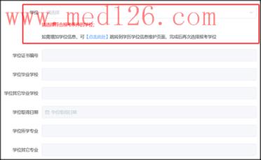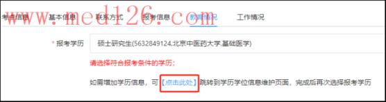 如引用的学历信息有误,请按照页面提示(如下图所示),在“学历学位信息维护”页面添加正确的学历信息后,再重新引用。