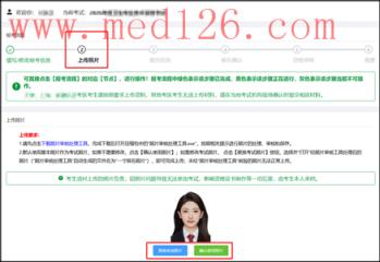 (7)以上信息提交后,系统会自动跳转至上传照片页面,也可点击【报考流程】中的“上传照片”节点,进入功能区上传照片。系统默认引用注册用户时上传的照片并直接显示,如未引用注册照片,请按照页面提示下载照片审核处理工具并完成照片上传。