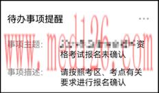 如经系统核验考生所提交信息与上一年度不一致,微信公众号会发出报名未确认的“待办事项提醒”(如下图)。
